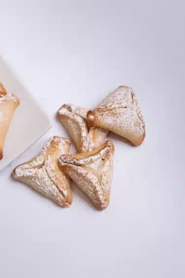 אוזני המן במילוי משמש עשיר, עם מתיקות עדינה ונגיעה חמצמצה שמעניקה איזון מושלם בכל ביס.